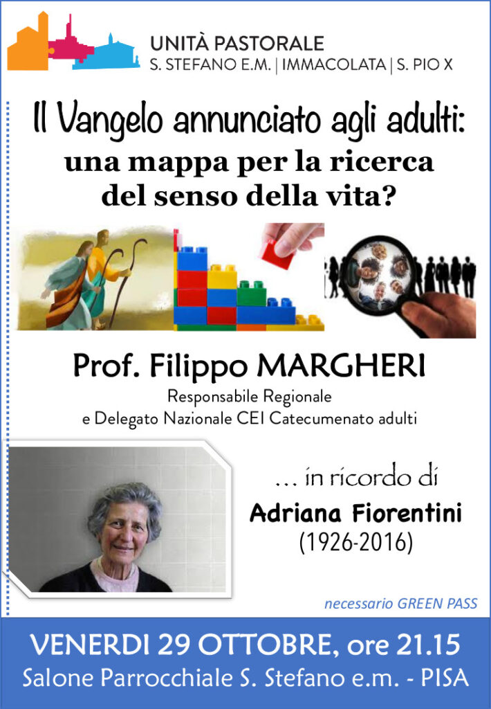 Citiamo il più significativo, nel 2018, quando l’incontro è stato presieduto dal nostro Arcivescovo e vi è stata la presentazione del volume che raccoglie alcune testimonianze liberamente condivise: “Adriana Fiorentini a Pisa 1968-2016. La bellezza di un cammino tra scienza e fede” – Raccolta di testimonianze – Pacini Editore, Pisa 2018 (per chi volesse, alcune copie del libro sono ancora disponibili).