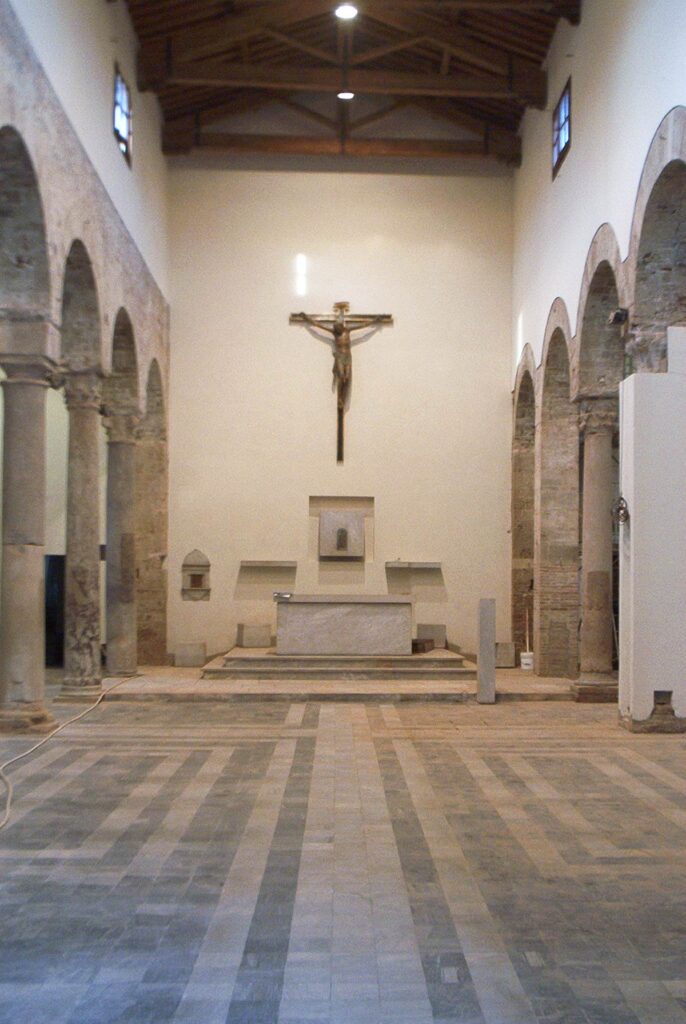 A questo punto ci siamo posti una domanda: dal momento che dobbiamo fare un intervento risolutivo non solo sulla parete ma anche su altre parti della stessa navata, perché non fare un controllo a tutta la struttura e dare un volto nuovo alla chiesa con una nuova pittura generale? C’è anche un’altra parte che ha davvero bisogno di essere sistemata: la sacrestia e i locali adiacenti. Questa parte nel 2004 non era stata toccata e, probabilmente, l’attuale sistemazione risale all’intervento del 1948. Se possibile vorremmo pensare anche a questa.