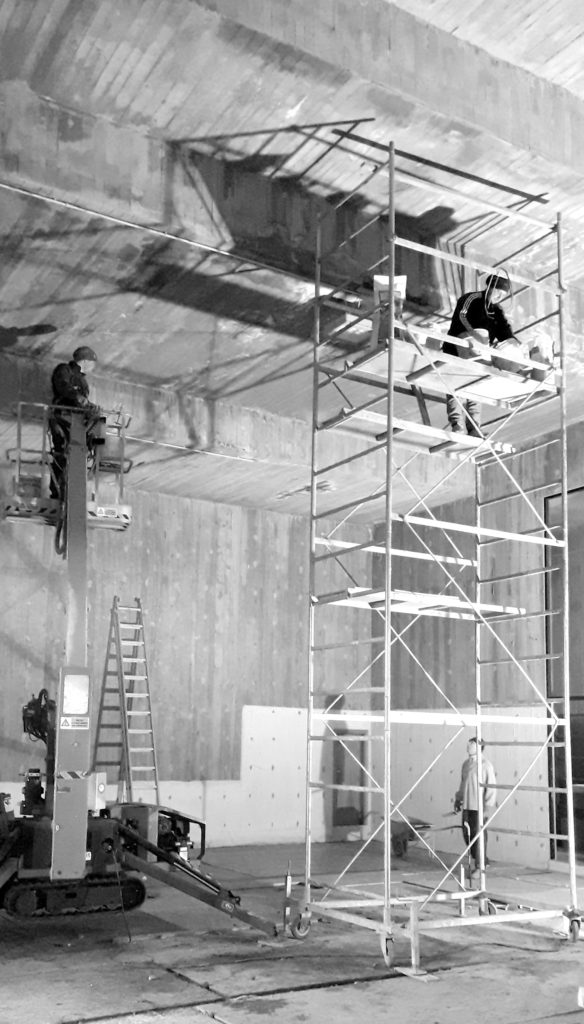 - Completamento della ripresa del cemento armato e dei ferri nell’aula grande