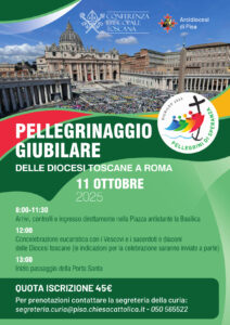 Per chi volesse partecipare al pellegrinaggio giubilare delle diocesi toscane a Roma, del prossimo 11 Ottobre 2025, è disponibile un autobus.