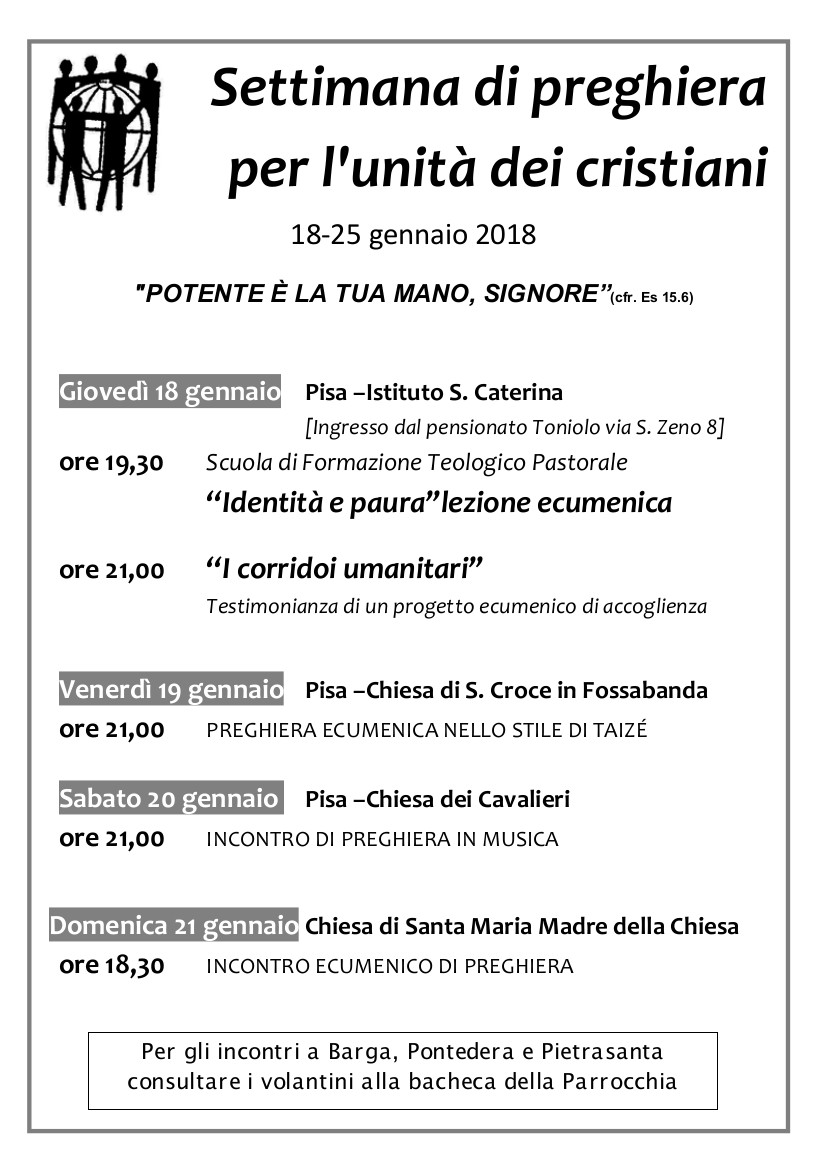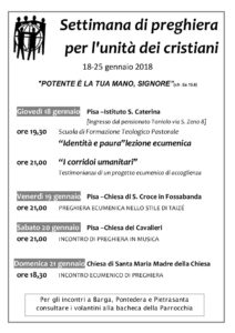 Tra pochi giorni ha inizio la Settimana Ecumenica 2018.