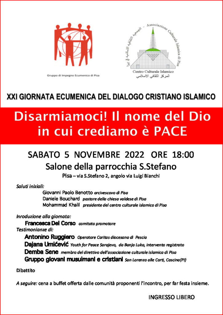A Pisa la giornata è promossa dal Gruppo di impegno ecumenico e dal Centro culturale islamico ed è un appuntamento stabile dal 2012.