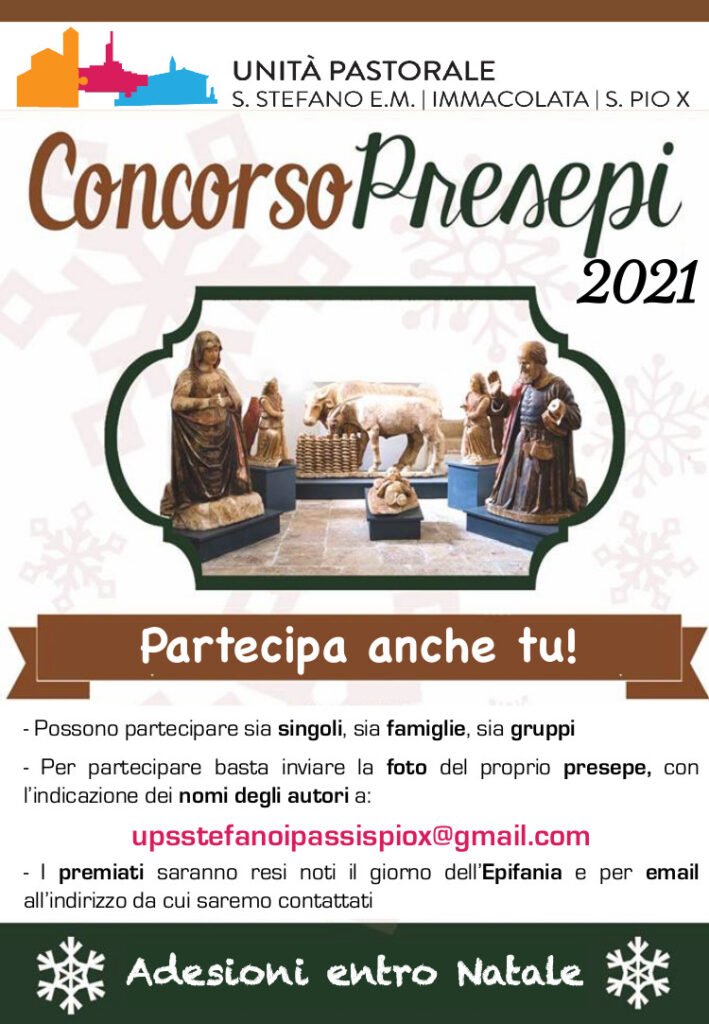 Una commissione valuterà i presepi e indicherà i vincitori del concorso, che riceveranno comunicazione per email (all’indirizzo da cui hanno mandato il materiale fotografico) e il giorno dell’Epifania durante una delle celebrazioni (info e dettagli in seguito).
