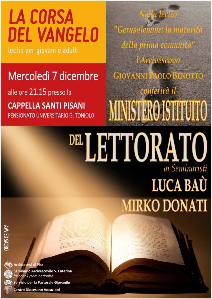 Durante la Lectio Conferimento del Lettorato a due seminaristi tra cui Luca Baù che ha svolto il suo servizio anche presso la nostra comunità.
