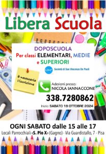 Sabato 19 Ottobre riprende il doposcuola organizzato dall’Unità Pastorale «S. Stefano – Immacolata – S. Pio X» e dalla San Vincenzo.